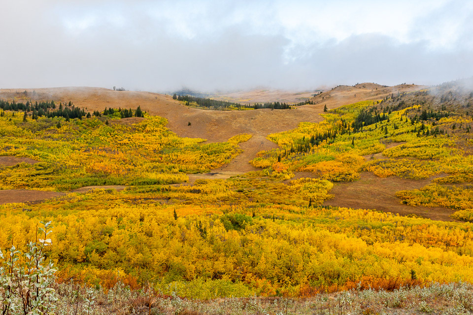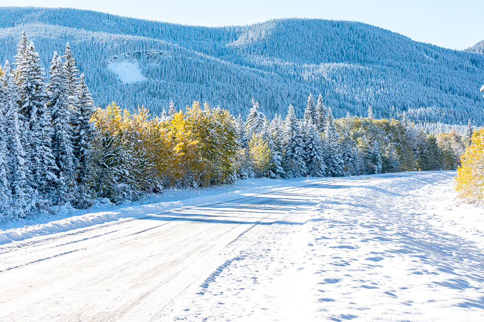 Daarna via Kootenay National Park naar Banff gereden. Hier waren we al eens eerder geweest, maar toen was Lake Louise dicht bevroren en nu niet. Echter tijdens onze dagen daar flinke sneeuwval gehad waardoor we vast kwamen te zitten en noodgedwongen in Kananaskis County terecht kwamen, prachtig gebied en veel minder toeristisch.